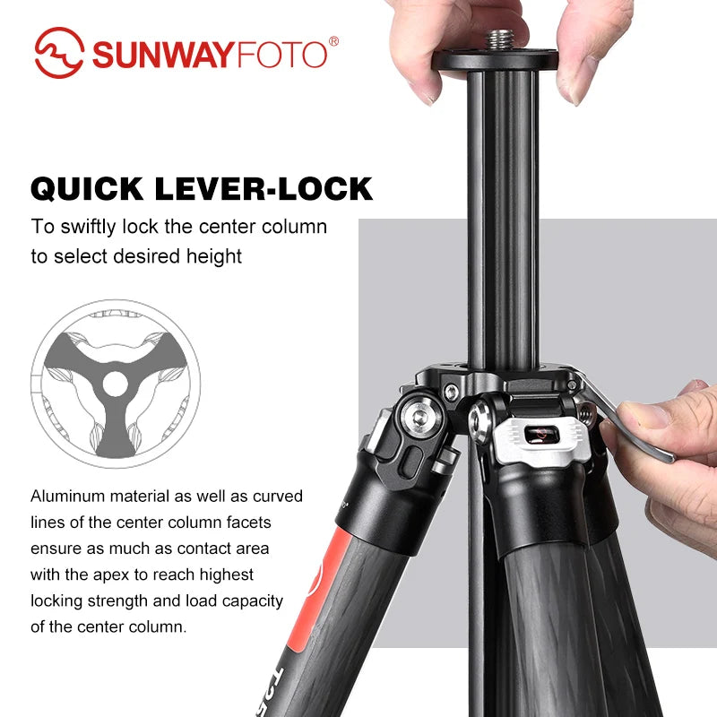 With their triangular shaped center column, the legs fold together closer minimizing the overall volume when packed. Easy to carry on the roadwhile maintaining the functionality of a traditional center column.