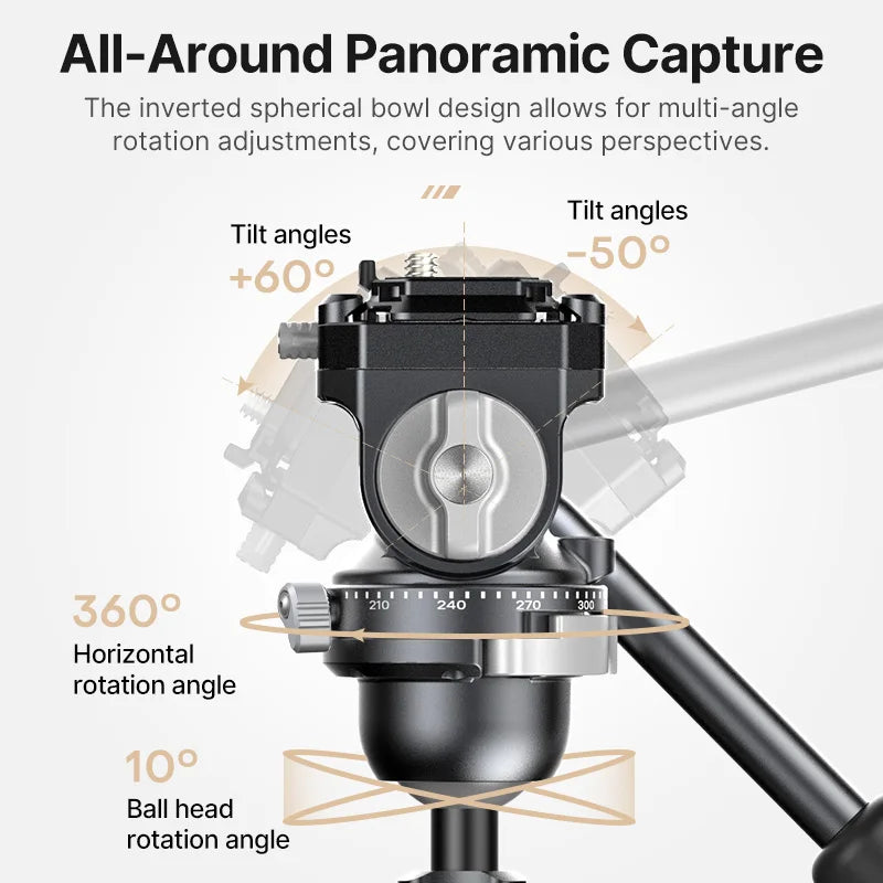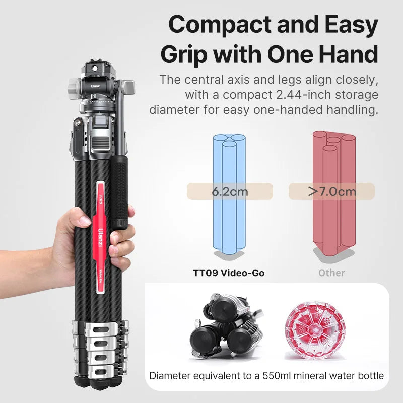 Ulanzi TT09 VideoGo Carbon Fiber Travel Tripod with 360° Panoramic Integrated Leveling Bowl Arca/Claw/F38 Quick Release for DSLR Camera