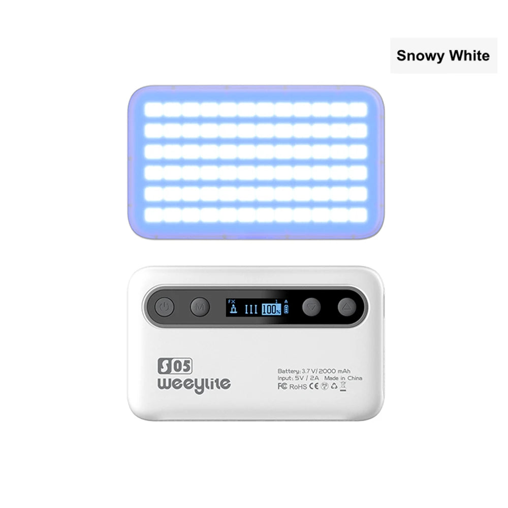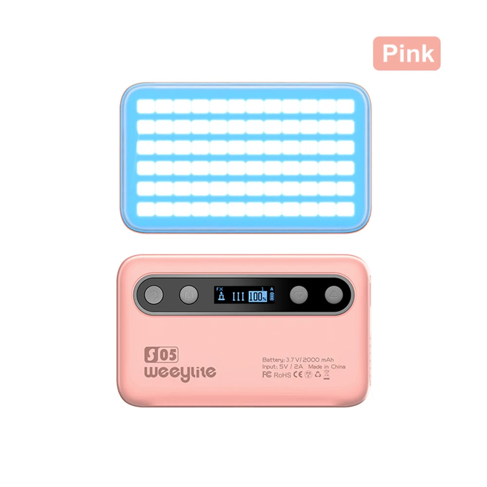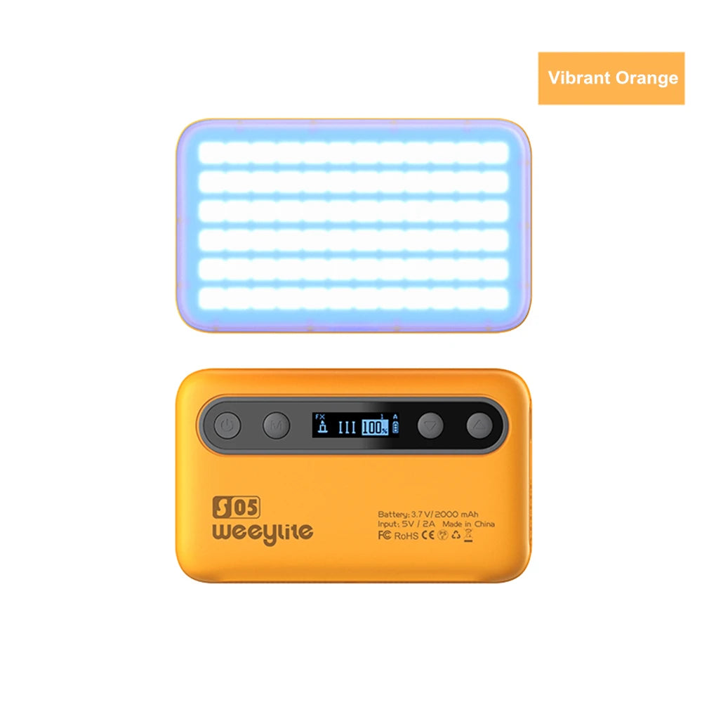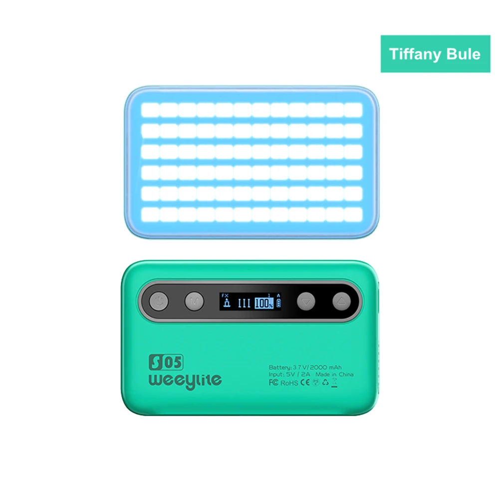 Weeylite S05 fill light is aportable pocket fill light.There are multiple high color (positive white+warm white) and high-quality RGB light beads. It has the advantages of low eneregy consumption,stable color temperature,energy and power saving,long service life, compact size and convenient carrying.It can be adopted in various scenes and perfectly used in photography,video, vlog recording,live broadcasting and so on.