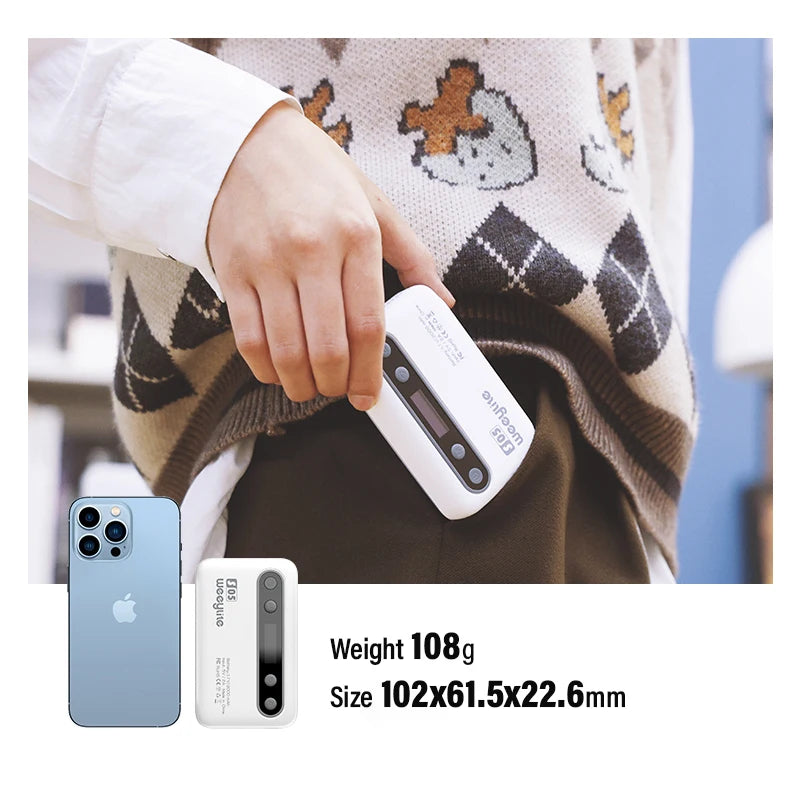 108g(weight), 4*2.4*0.9inch(size), compact and lightweight for carrying even in pocket, it’s smaller than iphone 6, easily to carry by one hand and is a must pack item for your camera bag/backpack, very small but puts out a decent amount of light. As a multifunctional led fill light, it is very suitable for hiking, running, camping and night light etc.