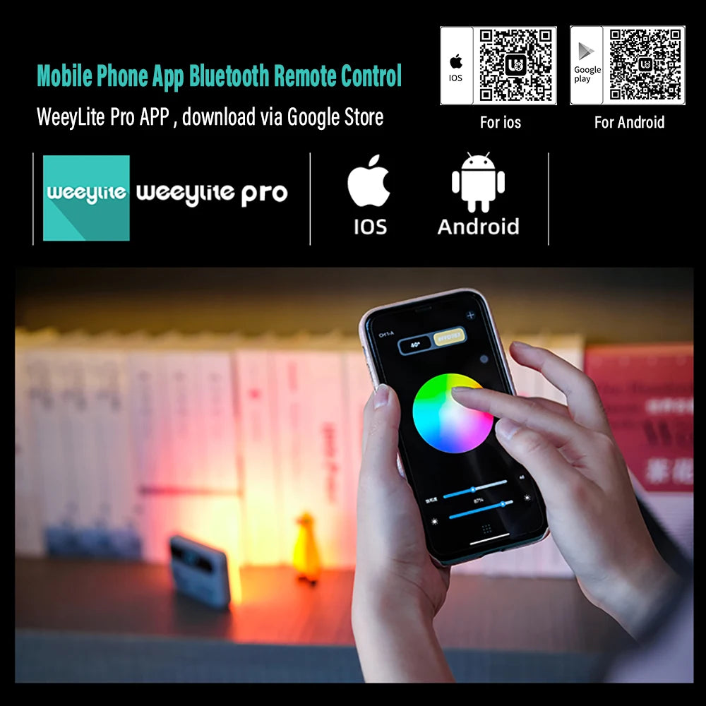 Weeylite S05 fill light is controlled by advanced 2.4G “WeeylitePro” mobile app, included 19 channels & 6 group supports single or multiple lights, even combined with other weeylite lights to get your ideal color and special effects, it's perfect light for video conferencing, video shooting, interview, YouTube, studio lighting.