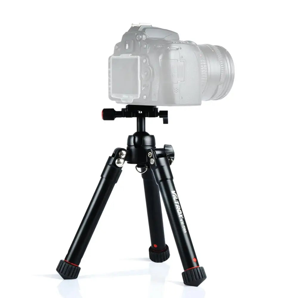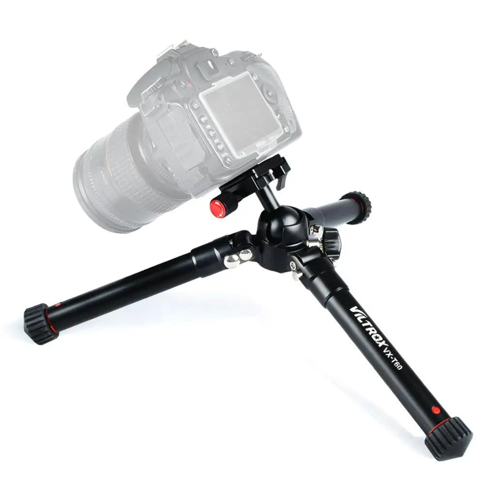 The tripod is a compact yet durable aluminum tripod with telescoping slide-out legs designed for low-angle shooting and bare-bones travel, supports up to 5.5 lbs. It collapses to just 9.6".After folding, and weighs just 1.3 lbs.