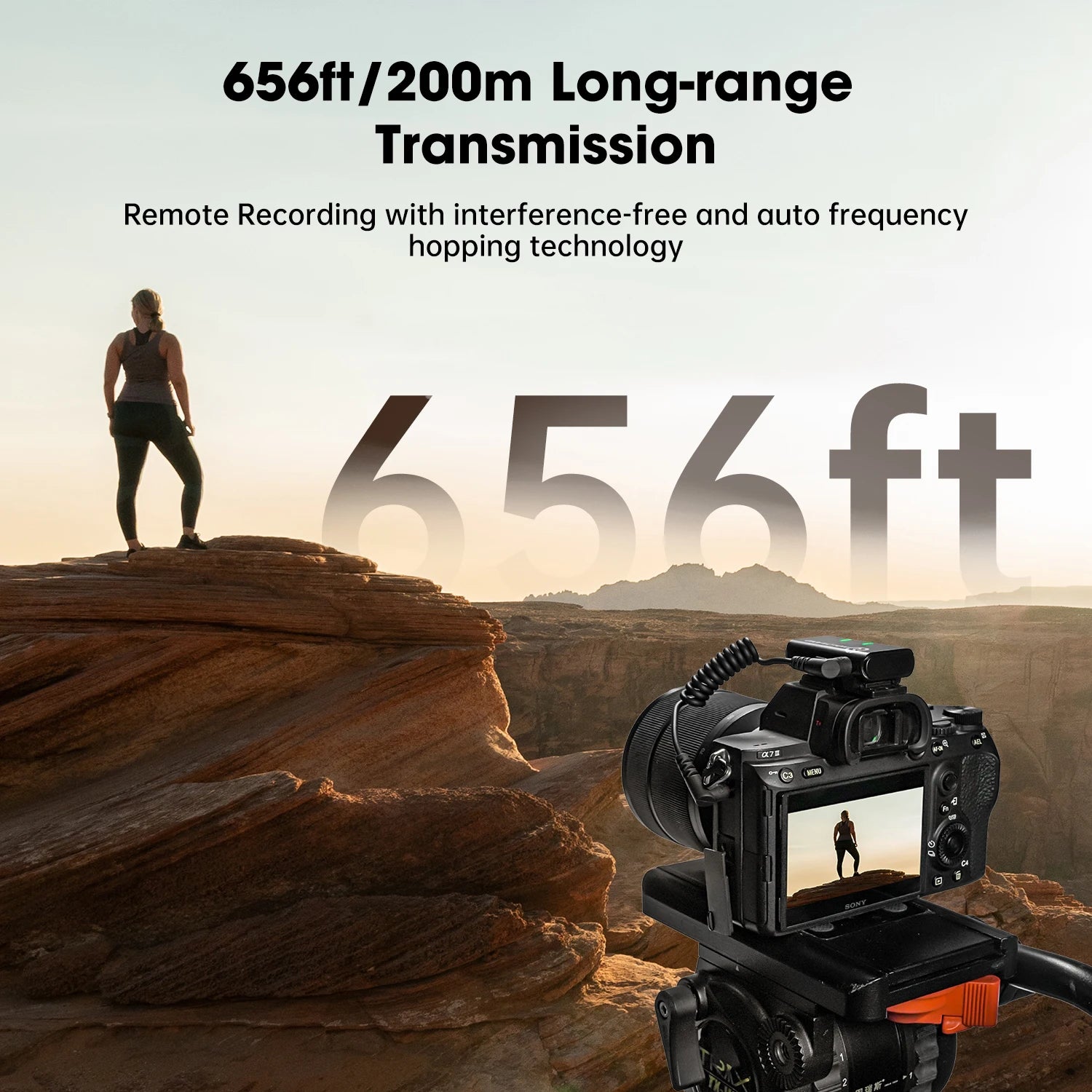 Easily achieve a professional uninterrupted recording result with the M1's interference-free open space distances of up to 650ft (200m) (LOS - lab test results) and its exclusive auto frequency hopping technology.