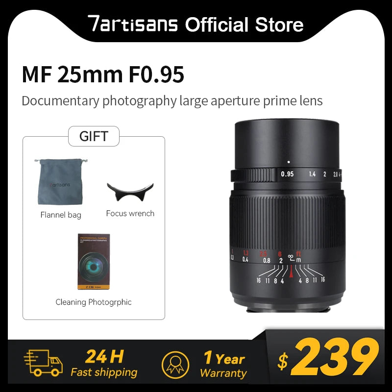 7artisans 25mm F0.95 APS-C wide-angle lens with a large aperture, named "Firefly" series with the recently released 50mm F0.95 and 35mm F0.95, a super-large aperture as its main feature.