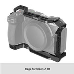 SmallRig Cage for Nikon Z 30 3858 is designed to provide protection and accessory mounts. Securing the camera via a 1/4"-20 screw and a side lock adapter on the right, the cage has silicone cushions that prevents scratches and maintains full access to all buttons, interfaces, the flip screen, etc. It also comes with a hinge arm at the battery door that fits camera curve for a comfortable grip and facilitates battery replacement; 1/4"-20 threaded holes and ARRI 3/8"-16 locating holes for Top Handle HTS2756, 3765, Side Handle HSS2425, 3814, HDMI Cable Clamp 1822; and a cold shoe mount on the top for microphone and LED light for Vlogging. An Arca-Swiss quick plate at the bottom supports Arca-Swiss tripod and DJI RS 2 / RSC 2 / RS 3 / RS 3 Pro stabilizer for quick switch among tripod, stabilizer and handheld modes. In addition, a magnetic double-ended wrench at the bottom is available to assemble and disassemble for your convenience.