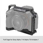 SmallRig Full Cage for Sony Alpha 7 IV/Alpha 7S III/Alpha 1 3667 is designed to provide accessory mounts and protect the camera. Two locking side plates are included, together with one 1/4"-20 screw at the bottom, to lock the camera and prevent deflection. Built-in all-around protective spacers prevent the camera from being scratched. The cage gives access to interfaces, dials, buttons, or battery door. There is a spindle spanner at the battery compartment which fits the camera curve and leave room for little finger for comfortable grip. 1/4"-20 threaded holes, ARRI 3/8" -16 locating holes, and cold shoes support top handle 2165, side handle 2093, monitor mount 2903, microphones, LED lights, monitors, etc. Arca quick release plate at the bottom is compatible with DJI RS 2/RSC 2 and the quick release plate (pad) of DJI RS 2/RSC 2 stabilizers for stabilizer shooting. Optional HDMI Cable Clamp 3000 works with Alpha 7 IV/Alpha 7S III to protect interfaces and ensure stable signal transmission during filming. Holes on the sides and bottom of the cage allow attaching such accessories as hand strap PAC2456 and shoulder strap PSC2428. Besides, the cage comes with a built-in magnetic spanner that facilitates disassembly and assembly.