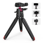 1. Universal tabletop mini tripod for supporting compact DSLRs, mirrorless cameras, smartphones, action cameras, and other devices, or handheld shooting.