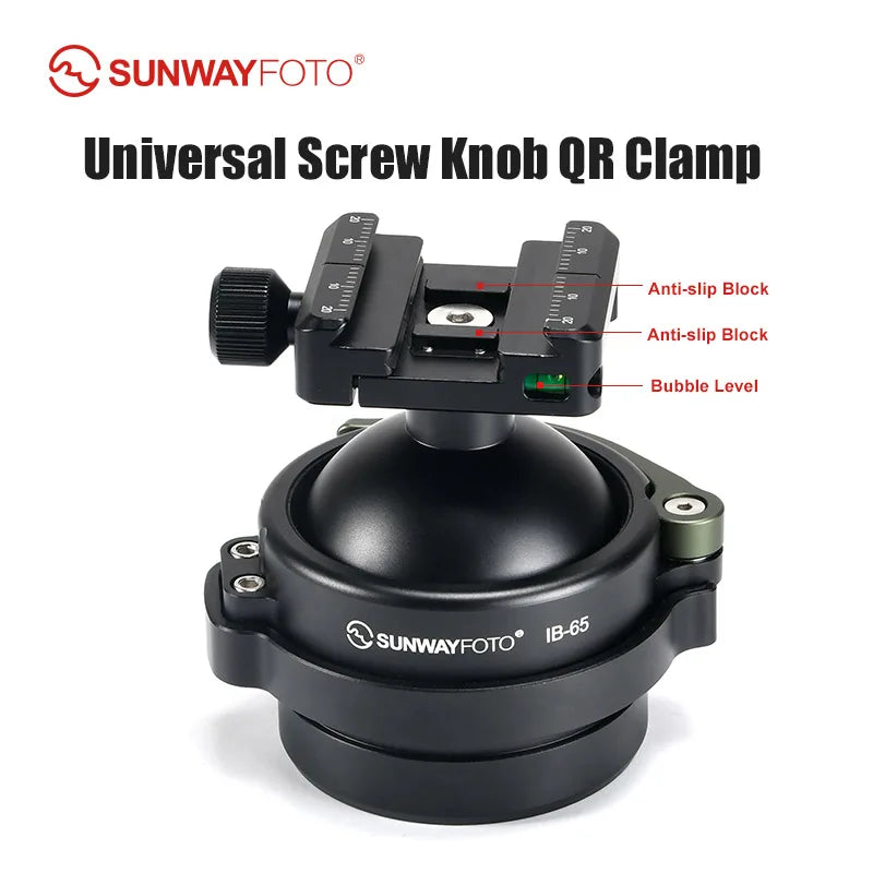 Clamp adopts screw-knob tightening, better compatibility with QR plates from different manufacturers.Bubble levels on both sides of the clamp for easier reading.