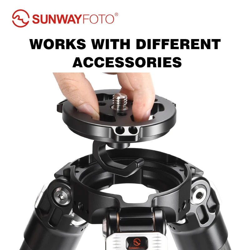 The apex is compatible with top platform, 2.96inch(75mm) bowl, dedicated center column etc. accessories to work with different ball heads.