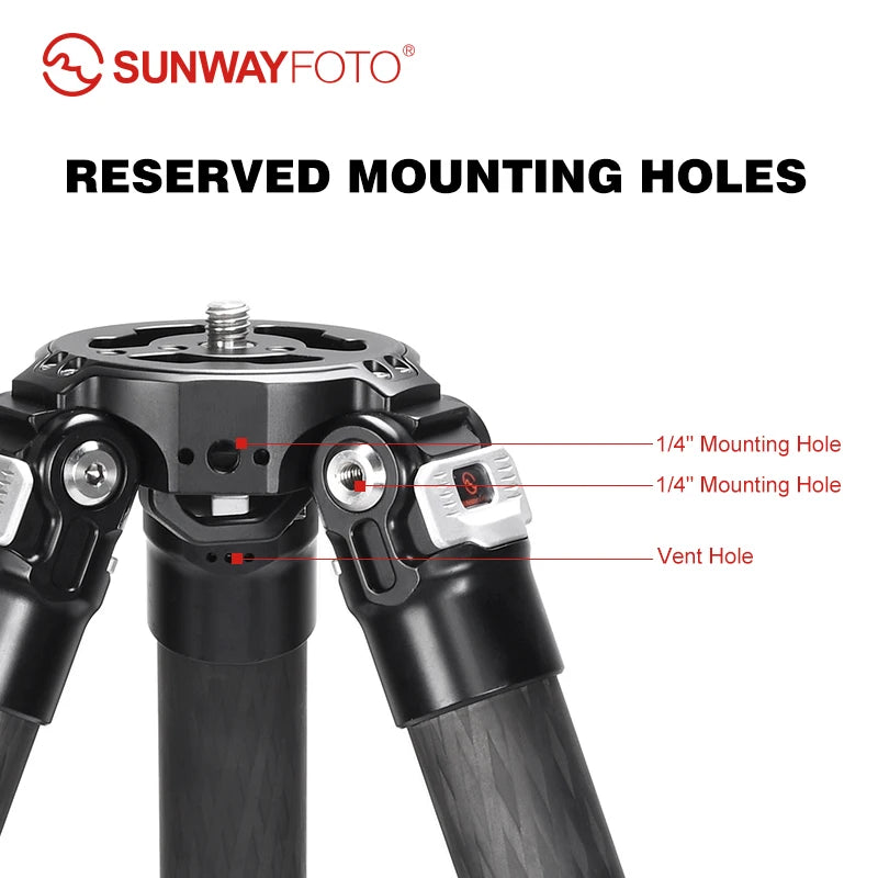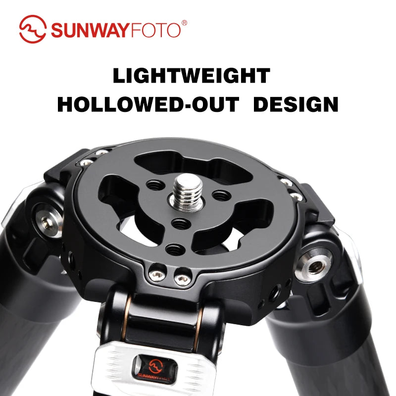 Hollowed-out design apex of the tripod minimizes weight and maintain absolute stablity.Hollow-out lightweight design tripod apex provides strong rigidity and vibration reducing performance, together with high quality carbon fiber tubes ensuring the tripod is easily carried on the road.