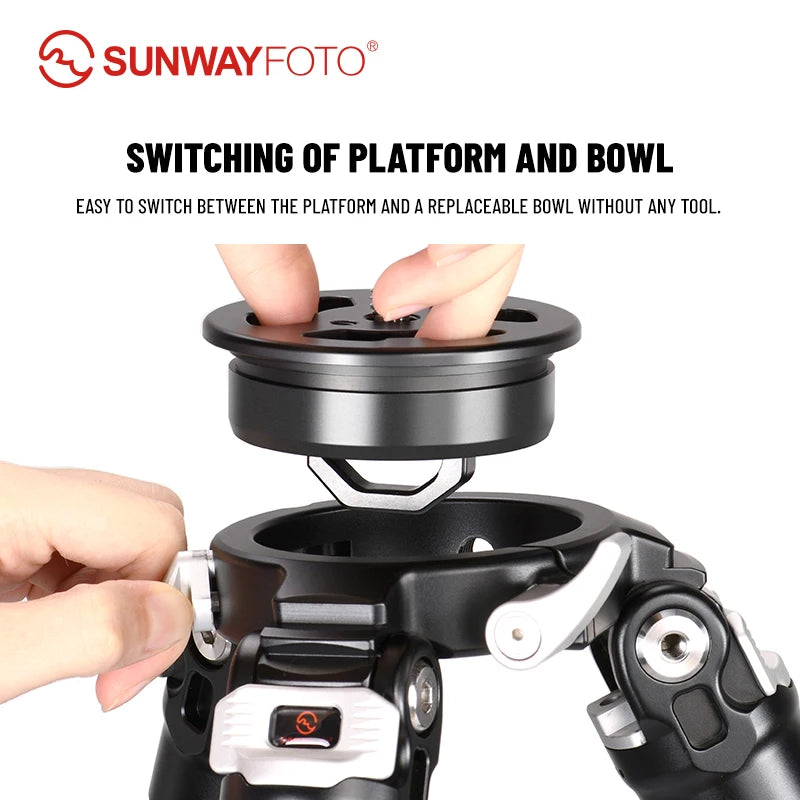 The apex is compatible with top platform, 2.95inch(75mm) bowl, dedicated center column etc. accessories to work with different ball heads.The platform and bowl can be easily replaced, and the toggle button can be locked with one button, saving time. The 2.95inch(75mm) bowl is a standard accessory, no need to purchase separately.