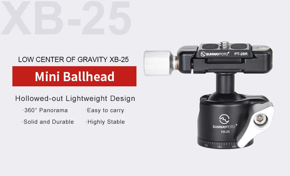 XB-25 is the smallest of XB series ballheads with low center of gravity and high locking strength.