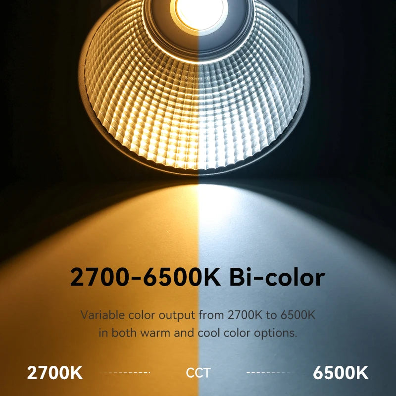4.2700-6500K Bi-color: Variable color output from 2700K to 6500K in both warm and cool color options.