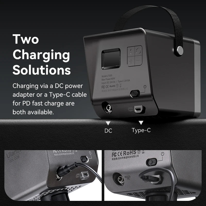 The Ulanzi LT005 60W Bi-color COB Video Light is a compact and lightweight option for content creators and vloggers. Offering a color temperature range of 2700 to 6500K with a 95+ CRI and dims from 0 to 100%, as well as 12 lighting effects, this light is capable of fitting many of your needs while weighing only 735g. Color and brightness can be adjusted on the fixture. The fan cooling system helps keep your light from overheating while running at levels quiet enough that it won't disturb your shooting.