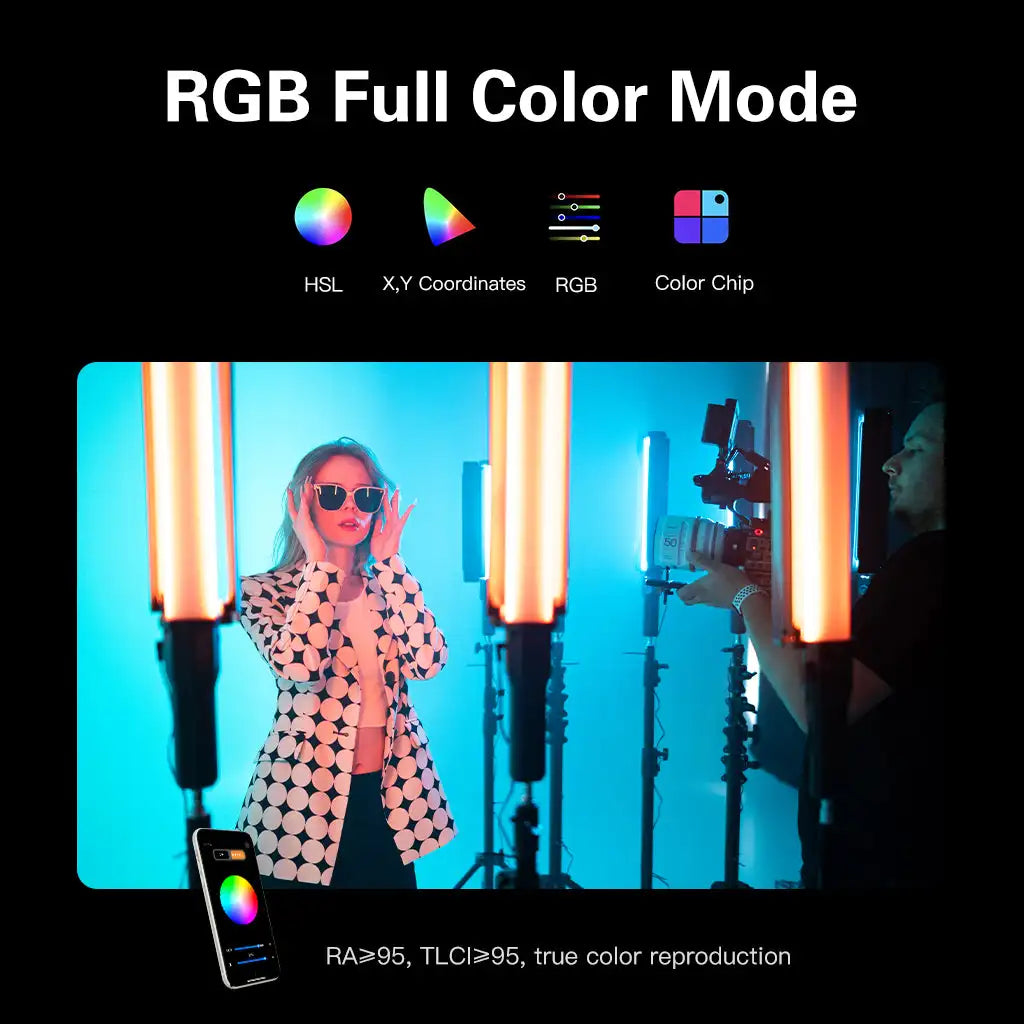 Intelligent light control panel, infinitely rotating pulsator, one-button switch between bi-color temperature and RGB full-color mode, design for more efficient fill light
