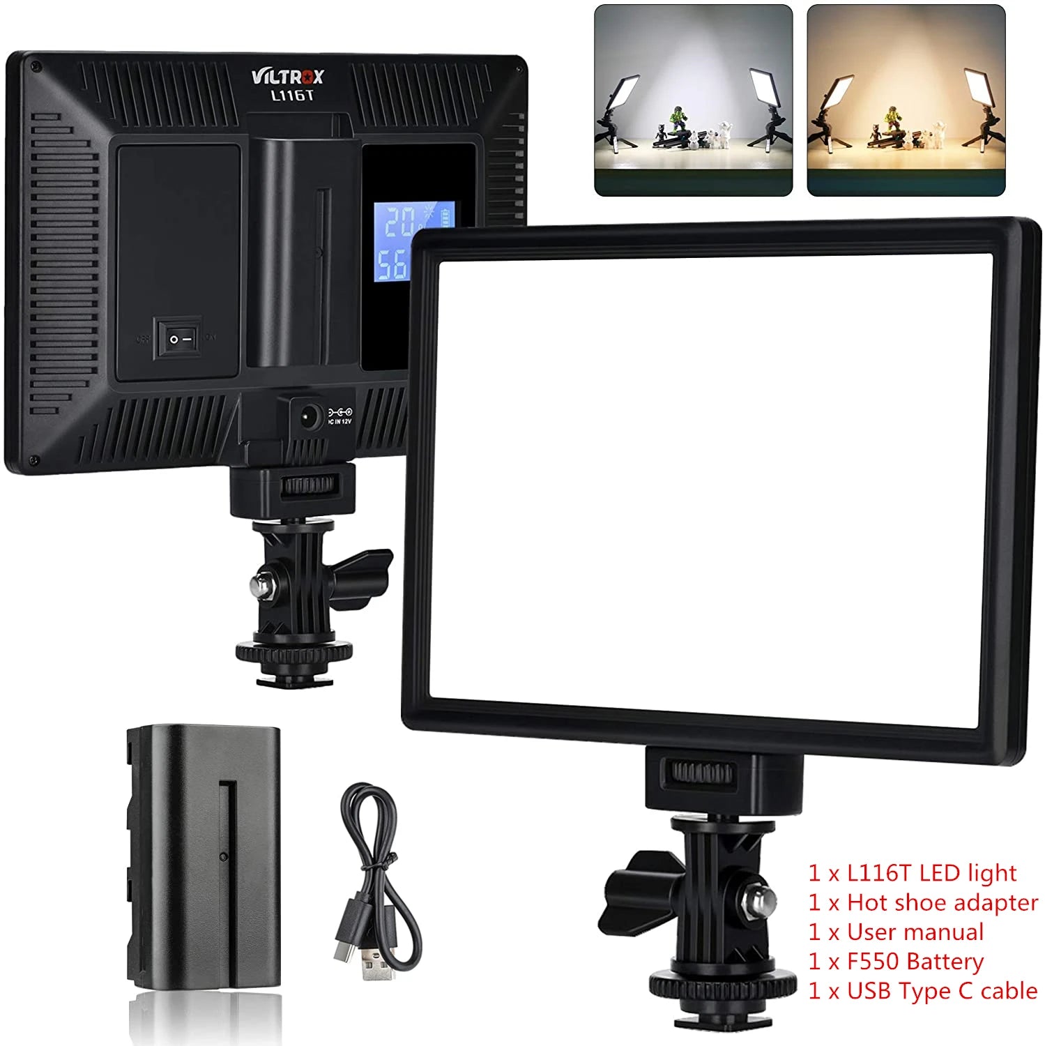 VILTROX L116T LED light adopts newest LED honeycomb design .It has high brightness ,nature and soft lights ,stable color temperature .suitable for portrait / children / wedding etc.