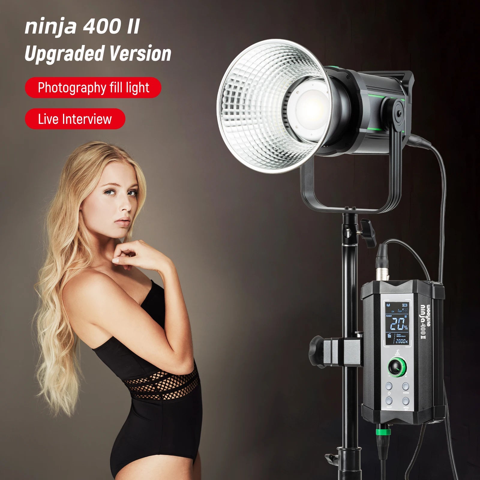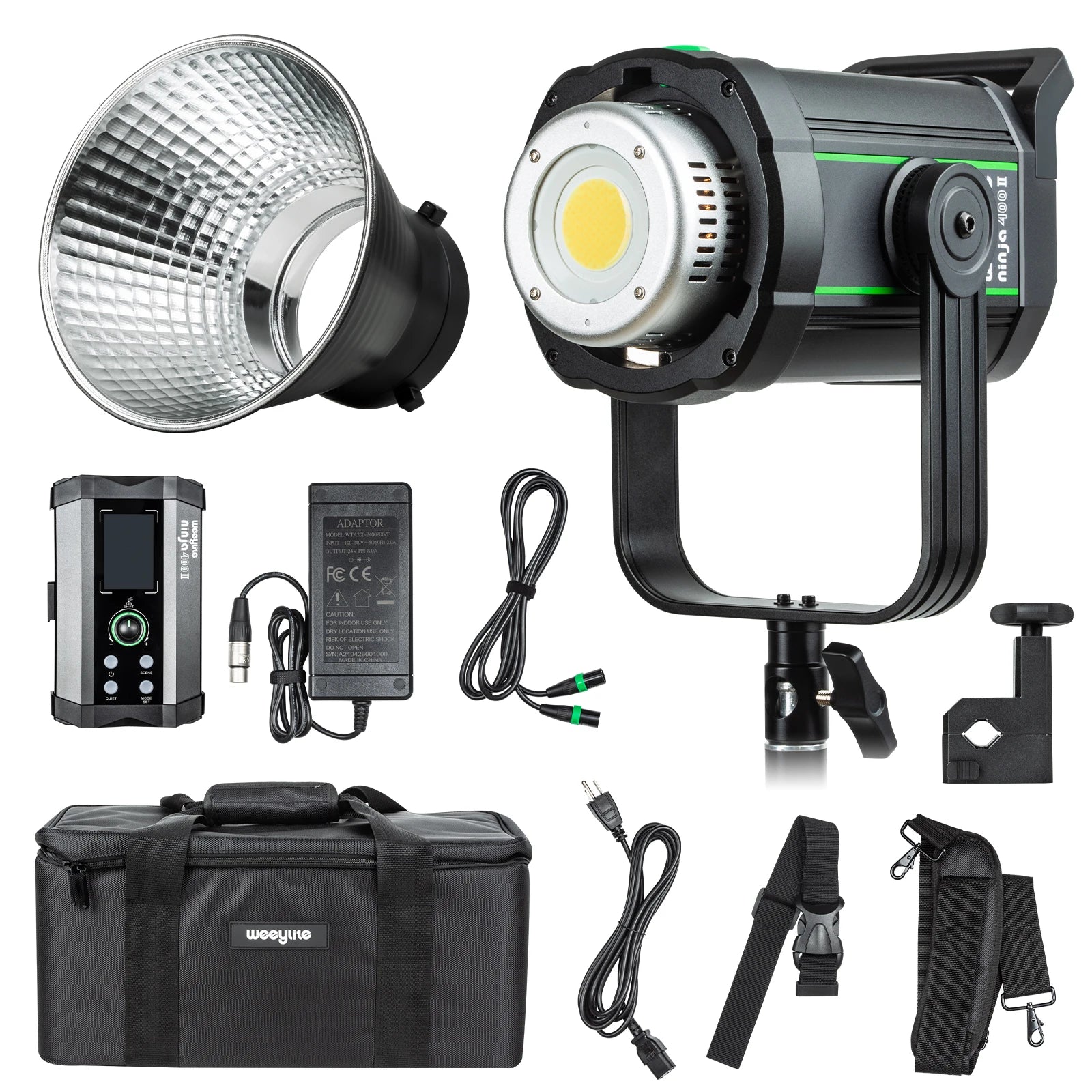 Weeylite ninja 400 II with COB new technology adopted, is made with high color rendering index bicolor COB LED lamp beads, of high light efficiency, color temperature, long life which can be used in photography, studio, exhibition hall and makeup etc. A decent choice of fill light for the scenes with high standard requirement of light sources.