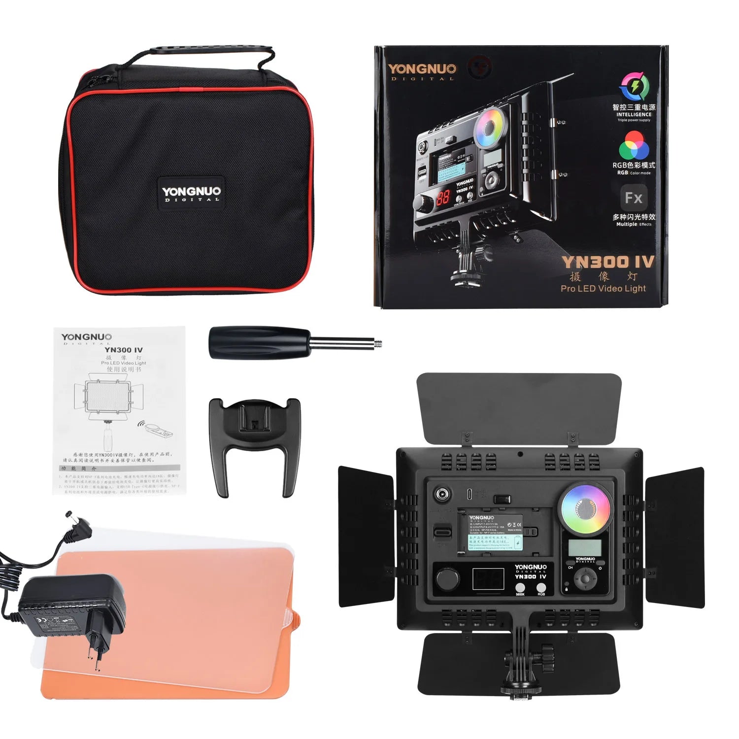 4.YN300 IV is made up of 316 high CRI LED beads and 60 RGB full-color SMD lights, brings you a variety of light-filling effects.
