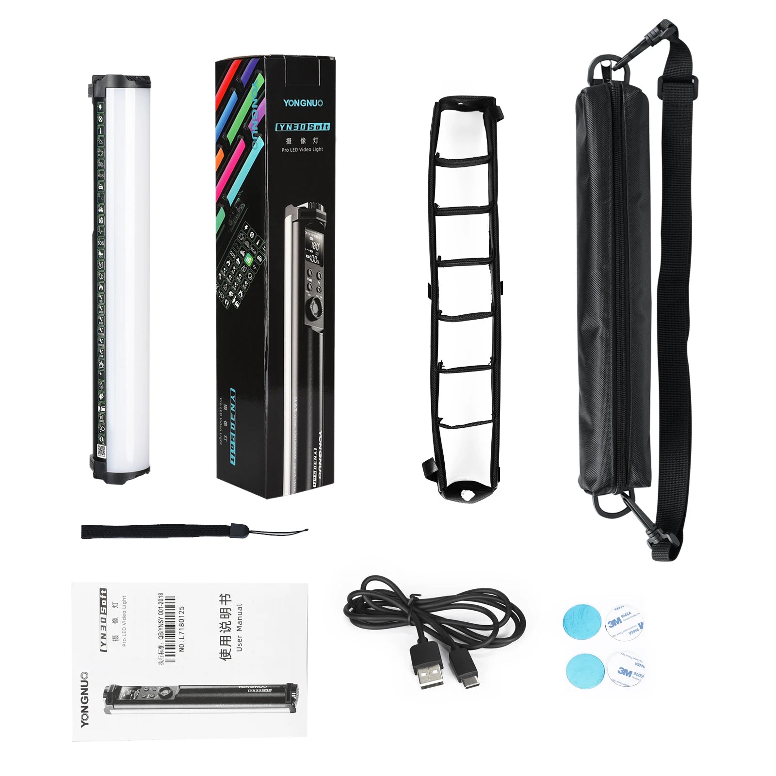 YONGNUO photographic lighting product series include studio lights, flat-panel camera lights, portable fill lights and LED stick lights.